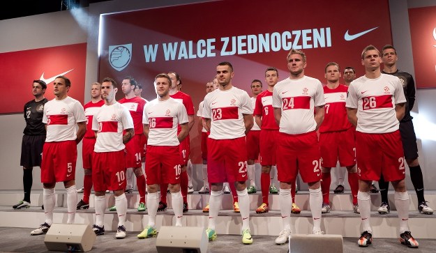 Nowe, oficjalne stroje piłkarskiej reprezentacji Polski pokazano we wtorek we Wrocławiu. Na koszulkach, które mają kolor biało-czerwony, znalazły się m.in. loga PZPN i Euro 2012, ale zabrakło tradycyjnej naszywki z godłem.